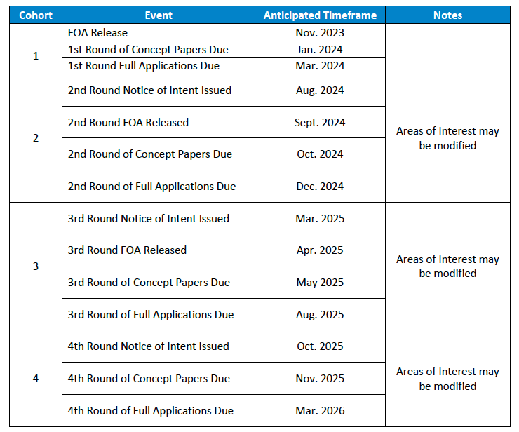 *This opportunity may be open for up to 48 months with separate review cycles until funding is expended. All funding may expended in the first round*